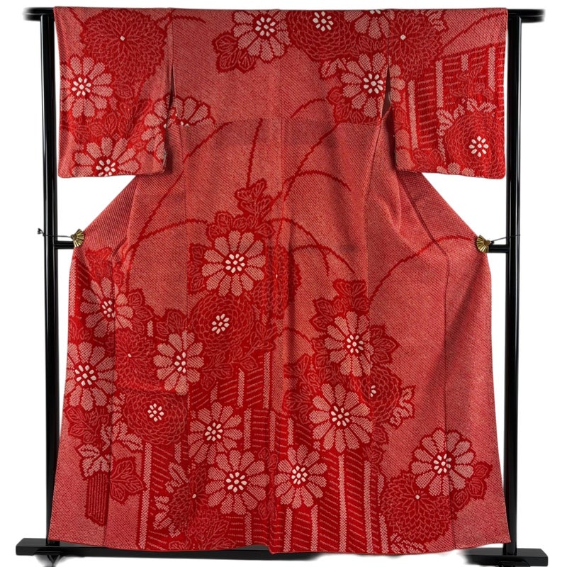 【訪問着】 赤系 赤 秀品 B 約150cm~約159cm 裄丈63cm-64cm (S)size 袖丈49cm 7990-9980 二万以下