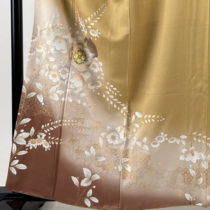 【訪問着】 黄色系 黄土色 秀品 B 約160cm~約169cm 裄丈63cm-64cm (M)size 袖丈49cm 7990-9980 二万以下
