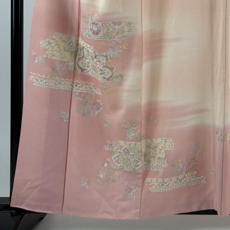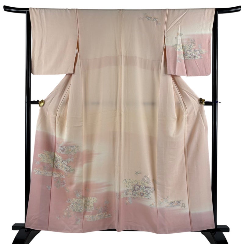 【訪問着】 赤系 薄ピンク 秀品 B 約150cm~約159cm 裄丈63cm-64cm (S)size 袖丈48cm 7990-9980 二万以下