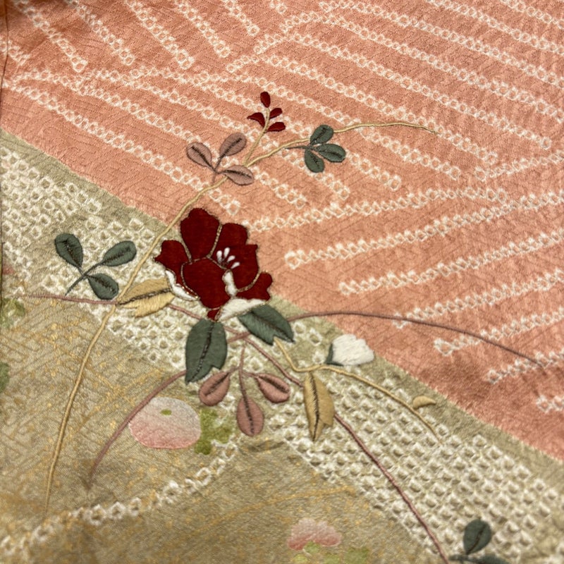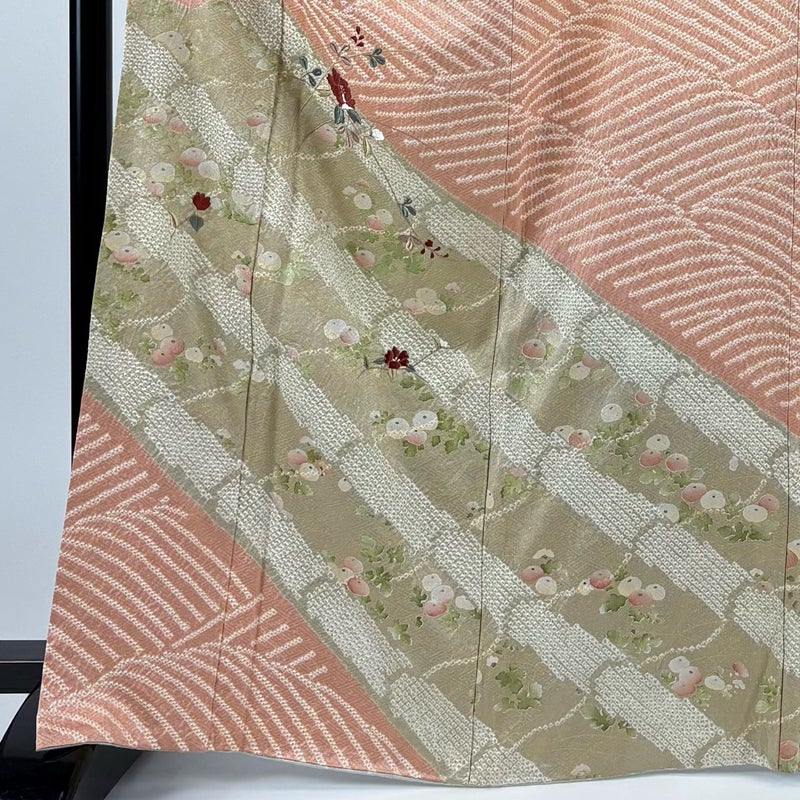 【訪問着】 赤系 サーモンピンク 秀品 A 約160cm~約169cm 裄丈65cm (M)size 袖丈48cm 9990-29990 美品 二万以下