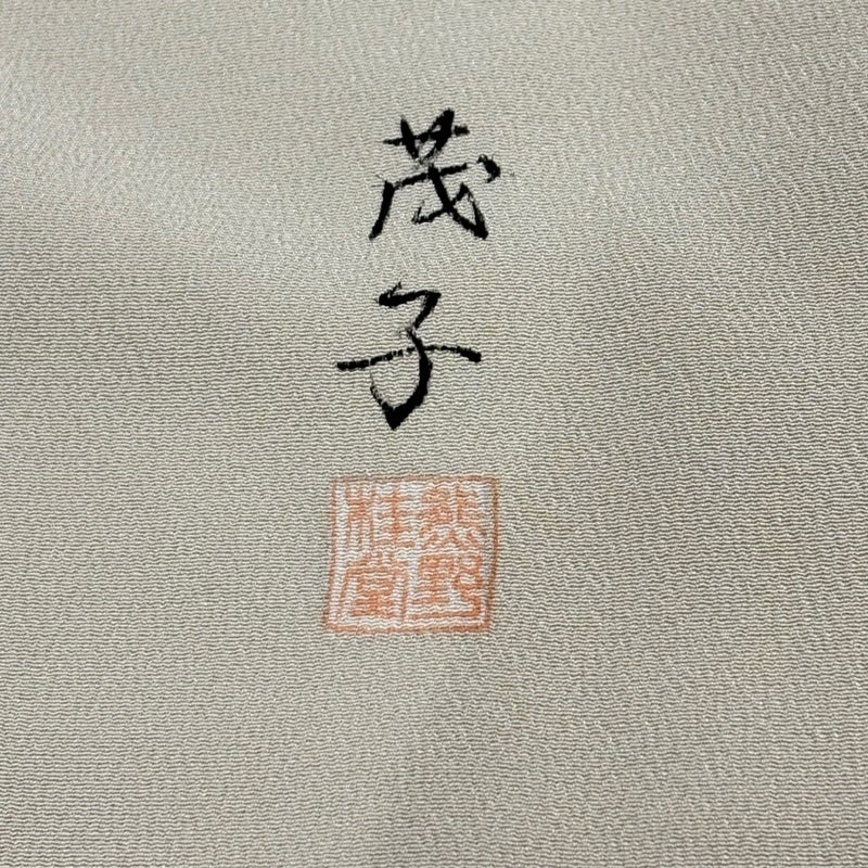 帯次第で幅広くお使いいただける素敵な訪問着です。 帯により格式を変える事の出来る印象のお着物は、様々に場面で活躍してくれることでしょう。 ※身丈・裄丈の縫込みの長さは測っておりません。 上前所々と下前と右胸と右衿にシミ、右袖前後と左前袖に薄いシミ、衿周りや両袖口中に汚れ、表地所々にシワがございます。 八掛にシミ、裏地所々にシワ、胴裏背中心に縫い目のゆるみがございます。 ご購入の際はその点ご留意ください。 ※なお、厳しく商品の状態確認を行っておりますが、記載の汚れ以外にも見落とし箇所がある可能性がある旨ご了承いただけますと幸いです。 沢山の商品の中からご覧いただき誠にありがとうございます。 ※為書きがございます。