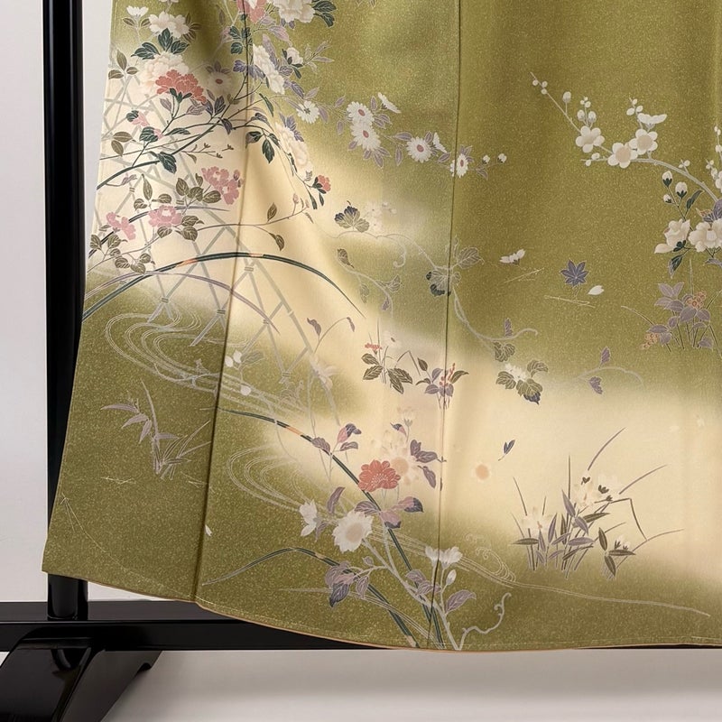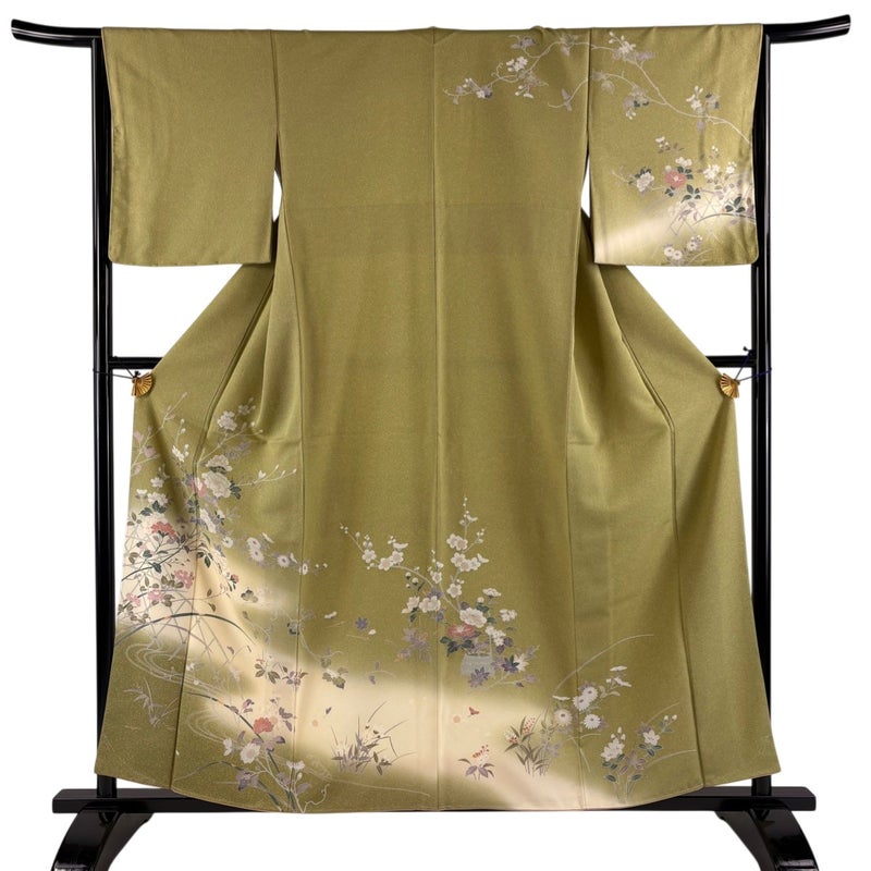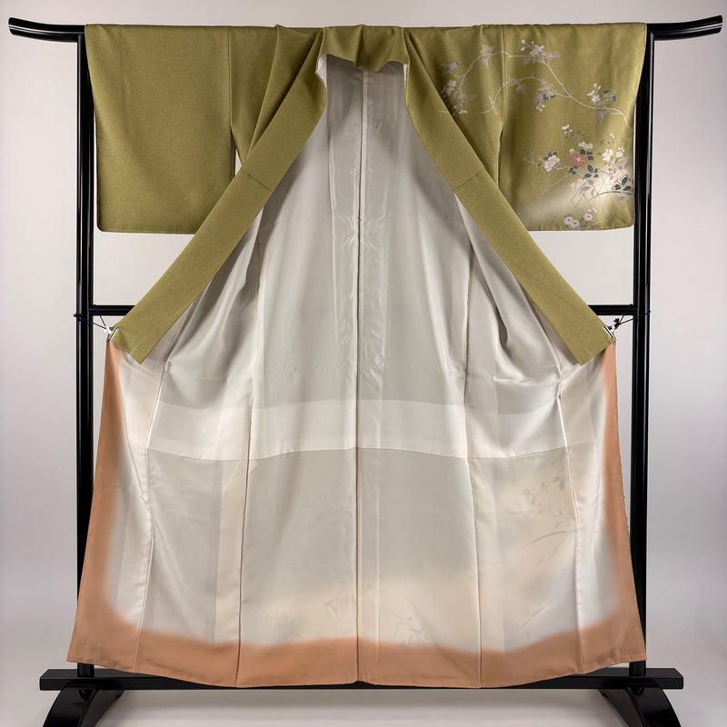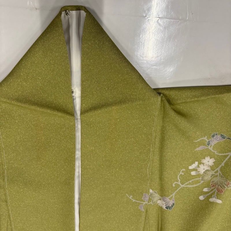 【訪問着】 緑系 抹茶色 秀品 B 約150cm~約159cm 裄丈65cm (M)size 袖丈49cm 7990-9980 二万以下