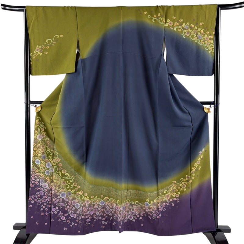 【訪問着】 緑系 鶯色 秀品 B 約160cm~約169cm 裄丈66cm (M)size 袖丈49cm 7990-9980 二万以下