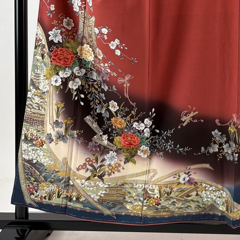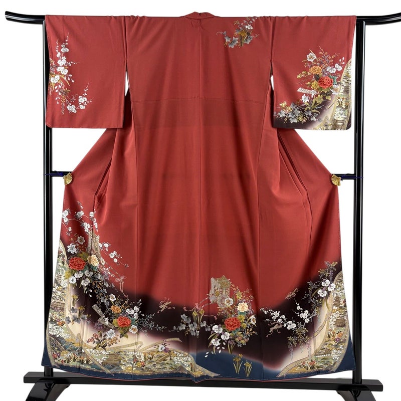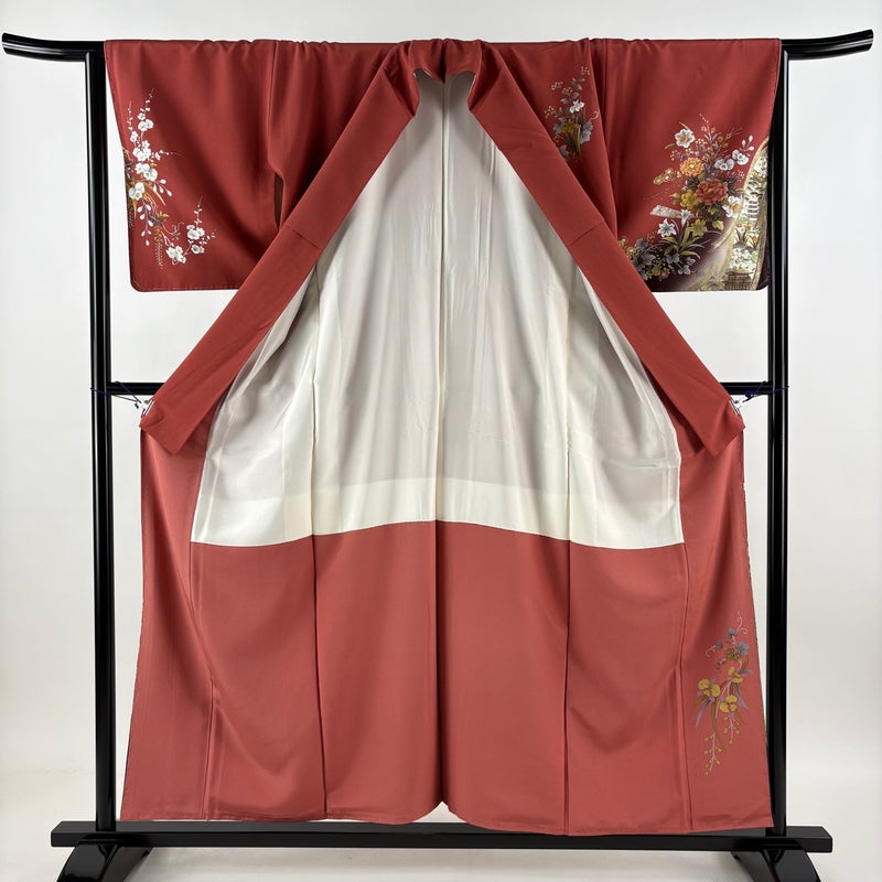 【訪問着】 赤系 茜色 秀品 B 約150cm~約159cm 裄丈63cm-64cm (M)size 袖丈49cm 7990-9980 二万以下