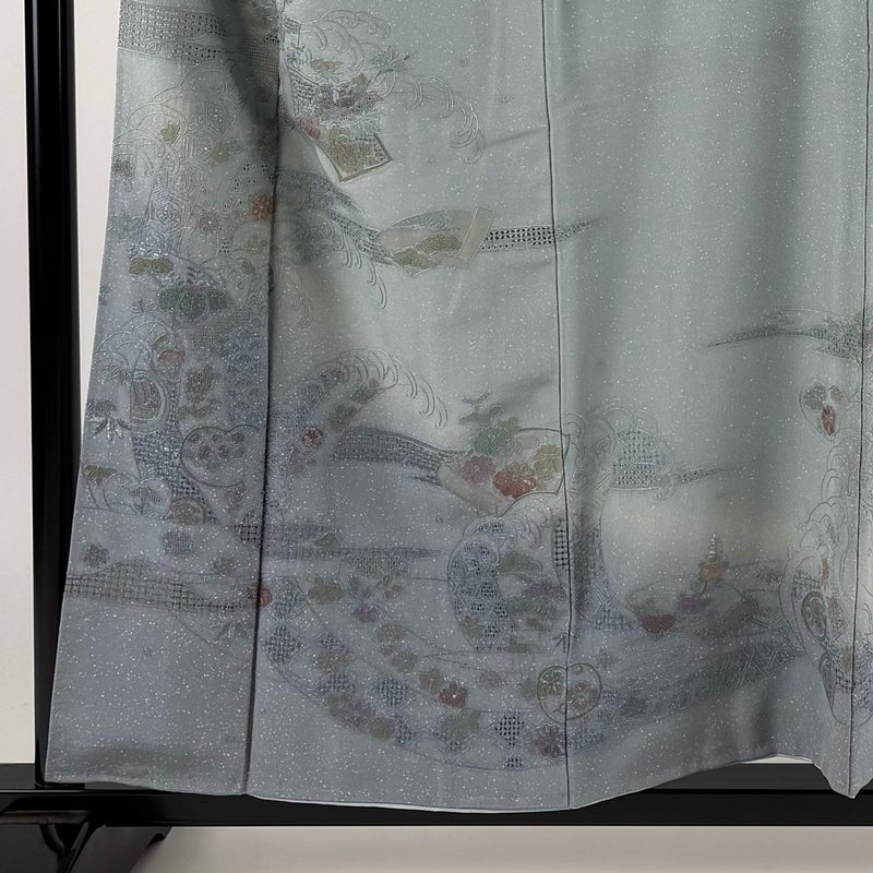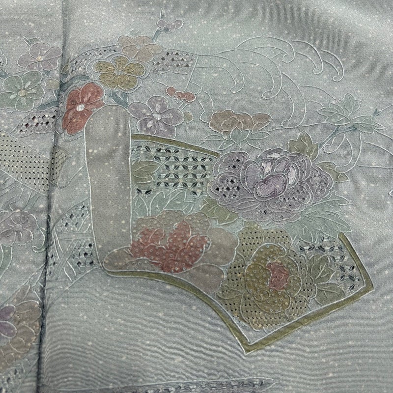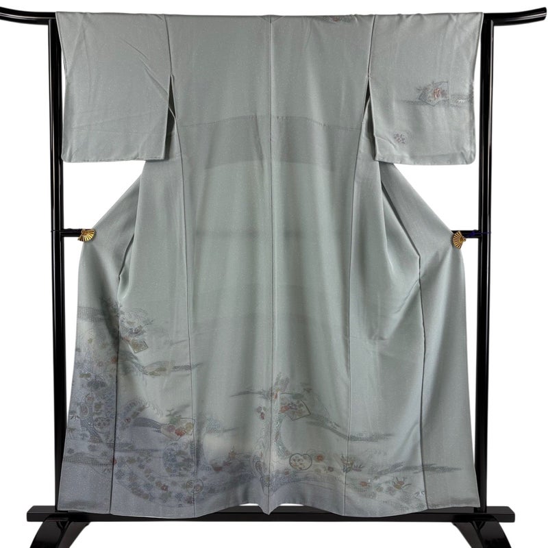 【訪問着】 灰色系 青灰色 秀品 B 約150cm~約159cm 裄丈63cm-64cm (S)size 袖丈47cm 7990-9980 二万以下