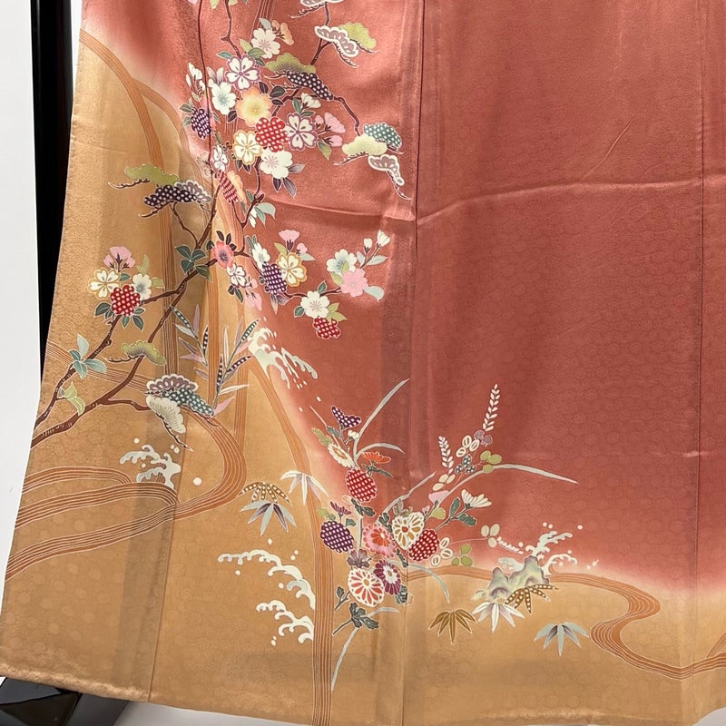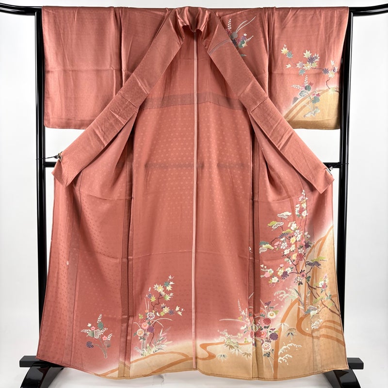 【訪問着】 赤系 ピンクベージュ 秀品 B 約160cm~約169cm 裄丈65cm (M)size 袖丈50cm-60cm 9990-29990 二万以下