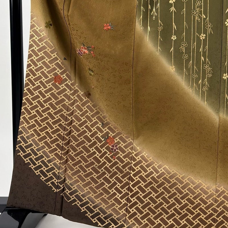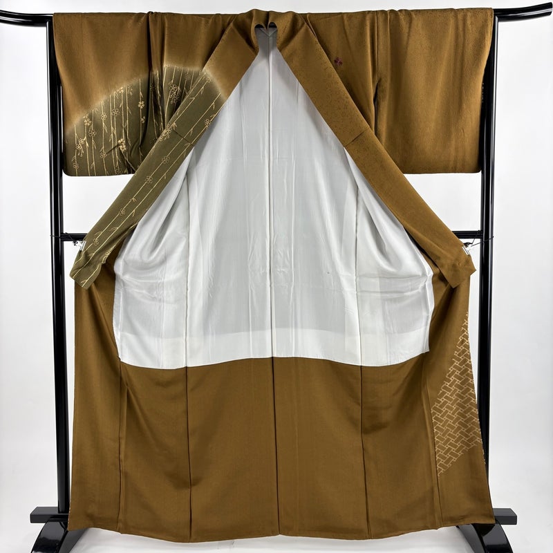 【着物ランク】秀品 【素材】正絹 【身丈】約163.5cm 【裄丈】約66cm 【袖丈】約49.5cm 【袖幅】約34.5cm 【前幅】約23cm 【後幅】約28.5cm 【サイズ】M 【着物仕立て】袷 【着用時期】10~5月 【状態ランク】ランクB 【着物着用シーン】披露宴、パーティー、お見合い、式典、茶会