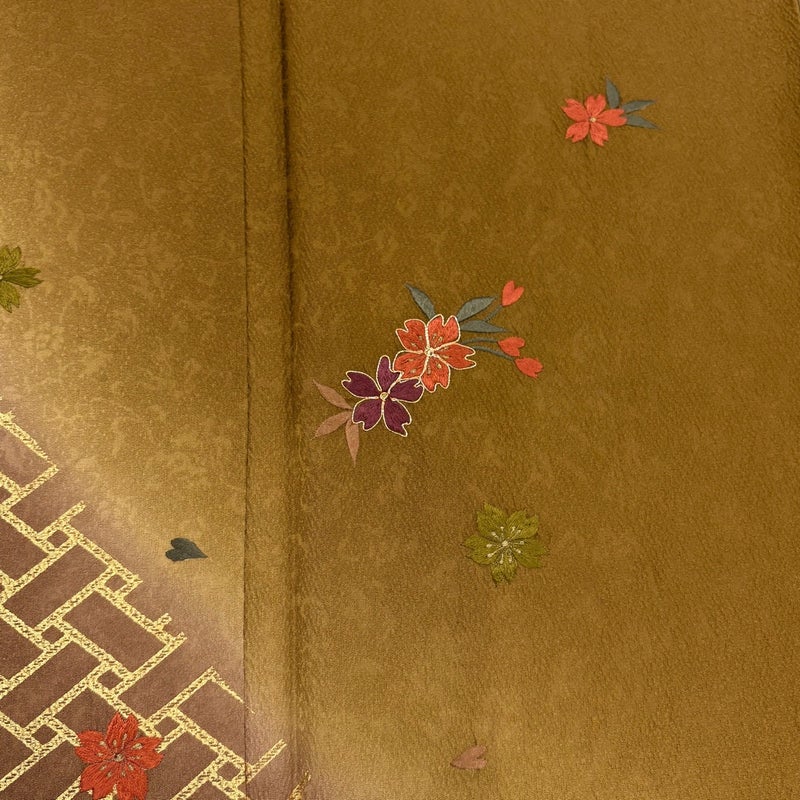 【訪問着】 黄色系 山吹茶色 秀品 B 約160cm~約169cm 裄丈66cm (M)size 袖丈49cm 7990-9980 二万以下