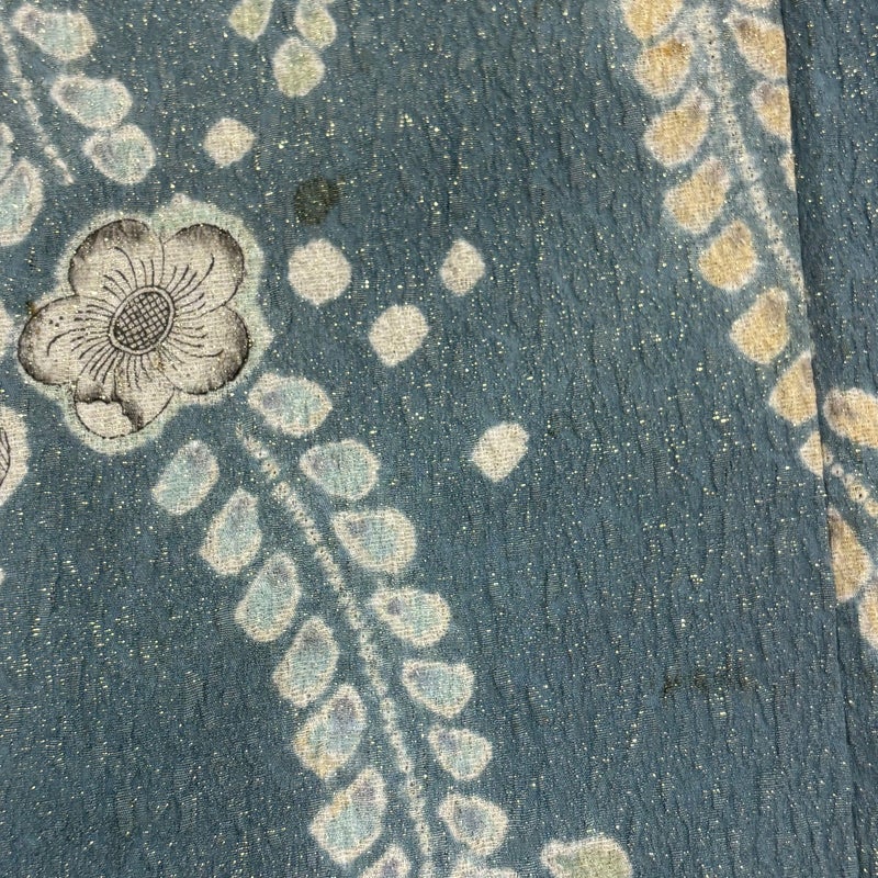 帯次第で幅広くお使いいただける素敵な訪問着です。 帯により格式を変える事の出来る印象のお着物は、様々に場面で活躍してくれることでしょう。 ※身丈・裄丈の縫込みの長さは測っておりません。 表地所々にヤケ、表地所々にシミ、衿周りや両袖口中に汚れがございます。 八掛裾部分に生地の傷み、裏地所々にシミがございます。 ご購入の際はその点ご留意ください。 ※なお、厳しく商品の状態確認を行っておりますが、記載の汚れ以外にも見落とし箇所がある可能性がある旨ご了承いただけますと幸いです。 また、上前から後身頃にかけて柄のズレがございます。 沢山の商品の中からご覧いただき誠にありがとうございます。