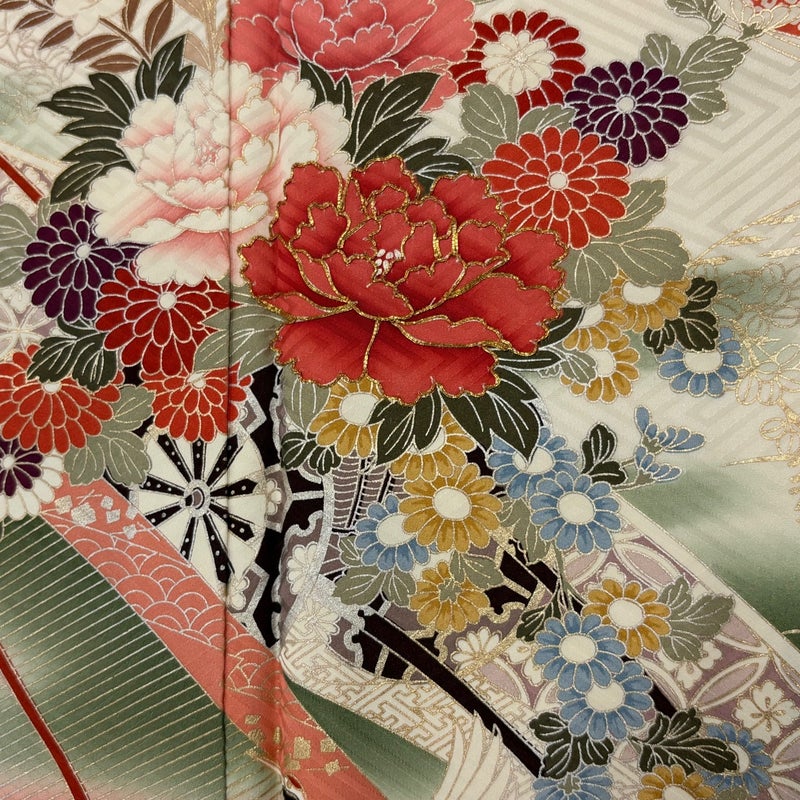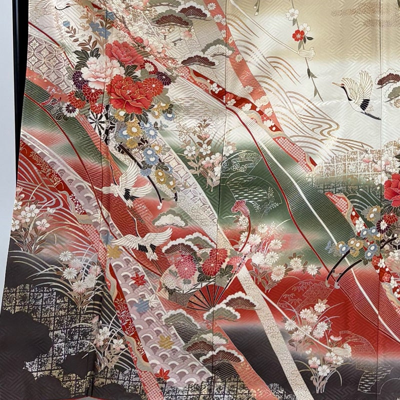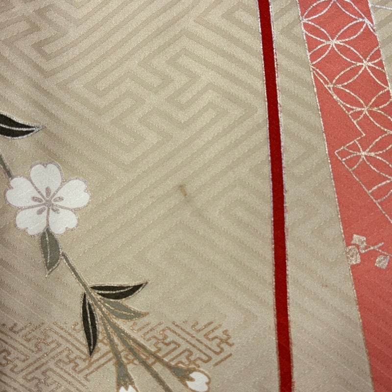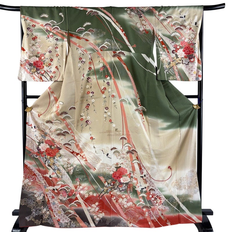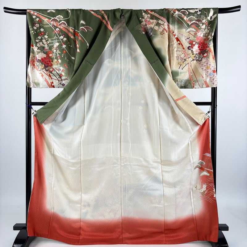 【着物ランク】秀品 【素材】正絹 【身丈】約169cm 【裄丈】約68cm 【袖丈】約57cm 【袖幅】約35.5cm 【前幅】約23cm 【後幅】約30.5cm 【サイズ】L 【着物仕立て】袷 【着用時期】10~5月 【状態ランク】ランクB 【着物着用シーン】披露宴、パーティー、お見合い、式典、茶会