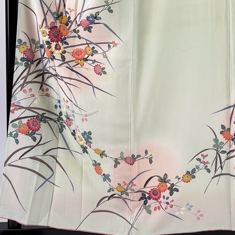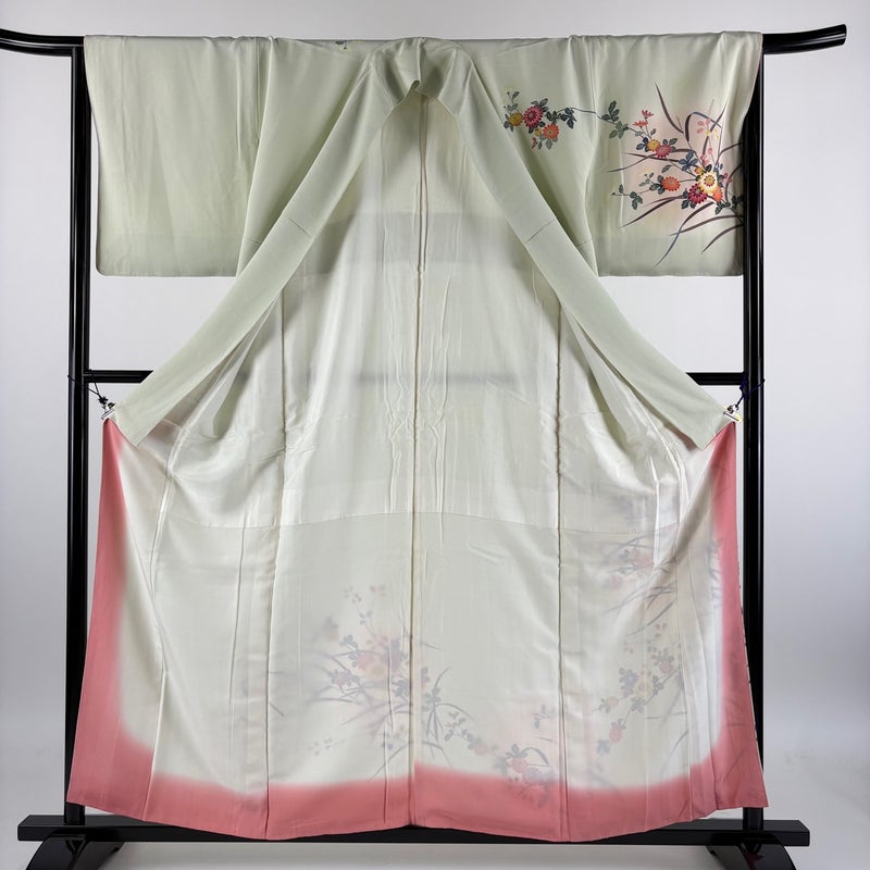 【訪問着】 緑系 薄緑 秀品 A 約150cm~約159cm 裄丈66cm (M)size 袖丈48cm 9990-29990 美品 二万以下