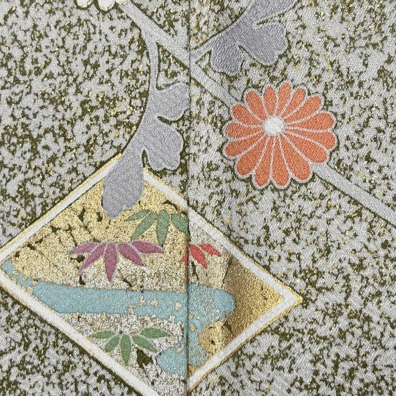 【着物ランク】優品 【素材】正絹 【身丈】約167cm 【裄丈】約68cm 【袖丈】約57cm 【袖幅】約35.5cm 【前幅】約24.5cm 【後幅】約30.5cm 【サイズ】L 【着物仕立て】袷 【着用時期】10~5月 【状態ランク】ランクB 【着物着用シーン】披露宴、パーティー、お見合い、式典、茶会