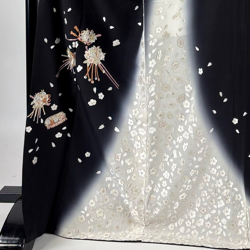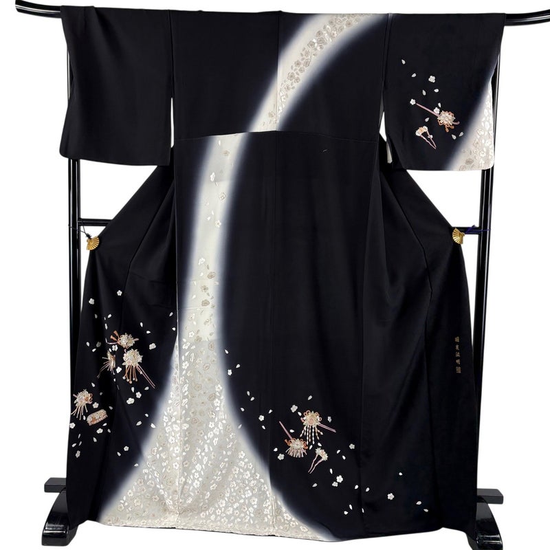 【訪問着】 黒系 黒 逸品 B 約170cm~約179cm 裄丈69cm以上 (L)size 袖丈49cm 30000- 五万以上