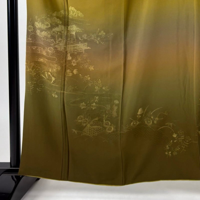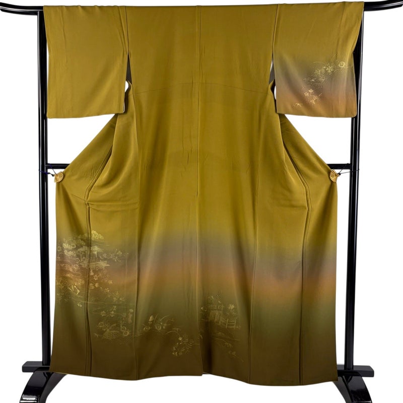 【訪問着】 茶系 茶緑色 秀品 B 約160cm~約169cm 裄丈65cm (M)size 袖丈48cm 7990-9980 二万以下