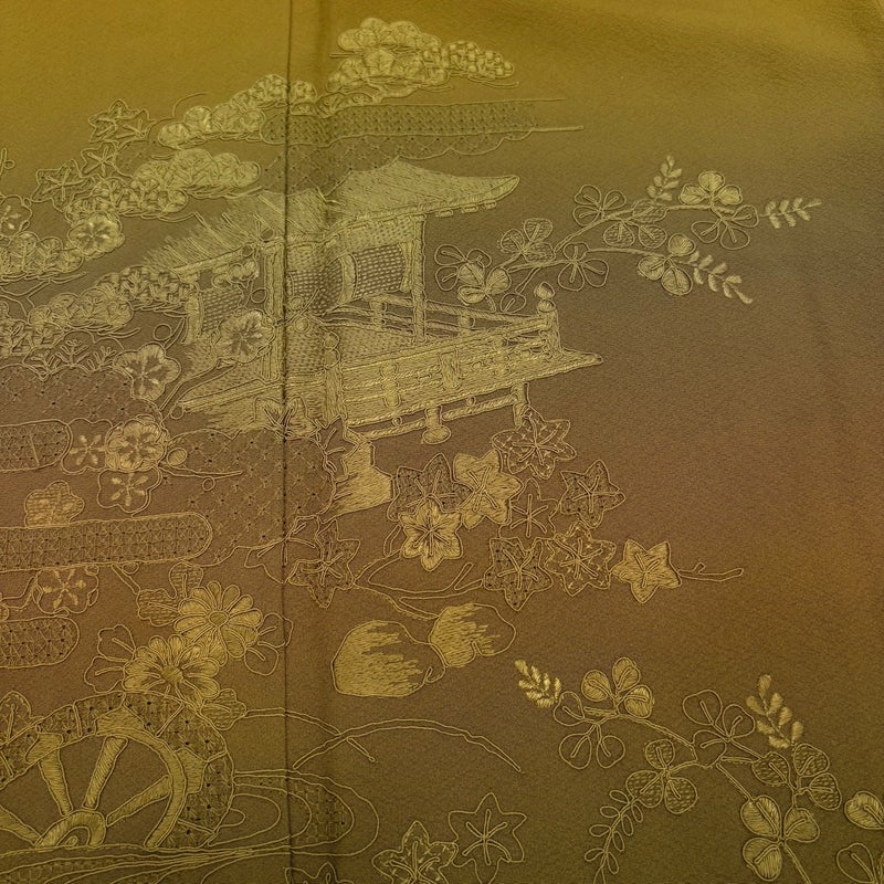 【着物ランク】秀品 【素材】正絹 【身丈】約160.5cm 【裄丈】約65cm 【袖丈】約48cm 【袖幅】約34cm 【前幅】約23.5cm 【後幅】約28.5cm 【サイズ】M 【着物仕立て】袷 【着用時期】10~5月 【状態ランク】ランクB 【着物着用シーン】披露宴、パーティー、お見合い、式典、茶会