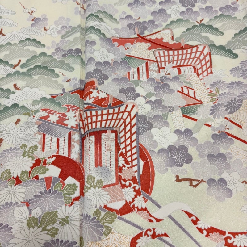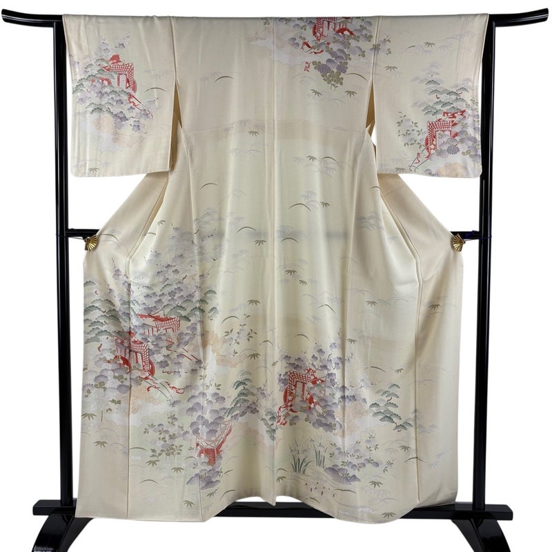 【着物ランク】秀品 【素材】正絹 【身丈】約158.5cm 【裄丈】約64cm 【袖丈】約50cm 【袖幅】約32.5cm 【前幅】約25cm 【後幅】約29.5cm 【サイズ】M 【着物仕立て】袷 【着用時期】10~5月 【状態ランク】ランクB 【着物着用シーン】披露宴、パーティー、お見合い、式典、茶会