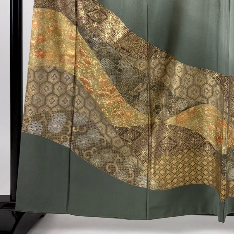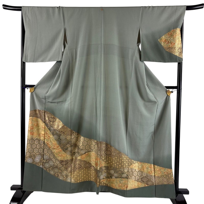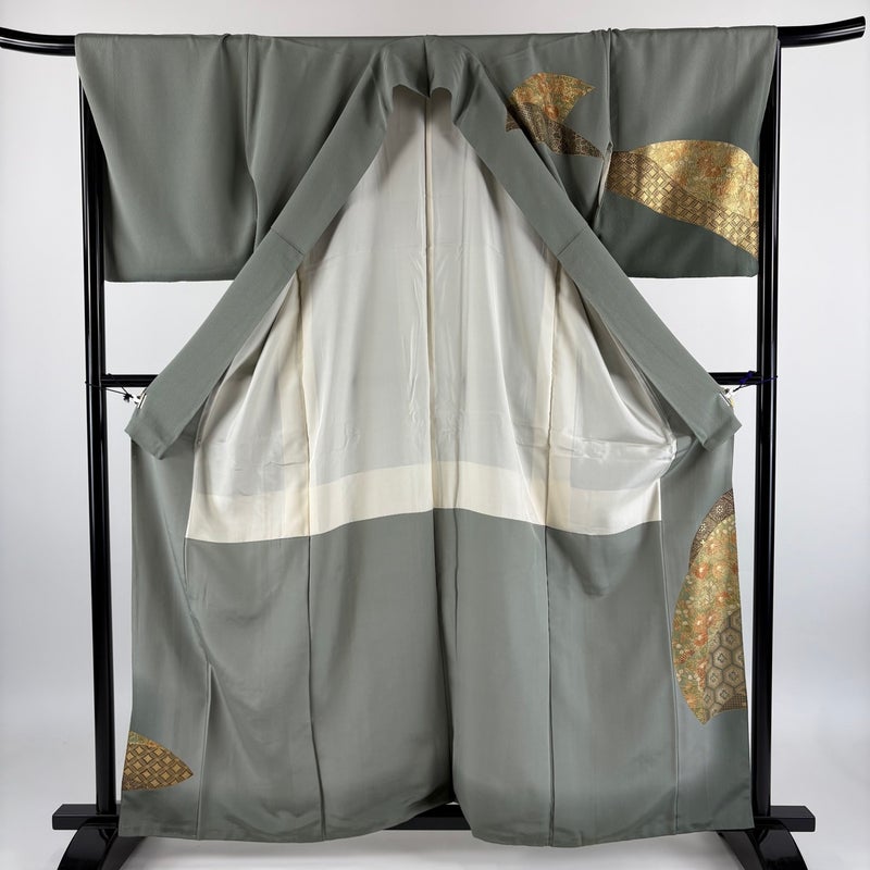 【訪問着】 灰色系 灰緑 秀品 B 約160cm~約169cm 裄丈67cm-68cm (L)size 袖丈48cm 7990-9980 二万以下