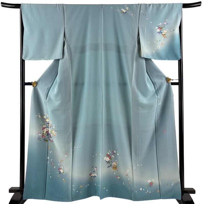 【訪問着】 青系 水色 秀品 B 約160cm~約169cm 裄丈67cm-68cm (L)size 袖丈49cm 7990-9980 二万以下