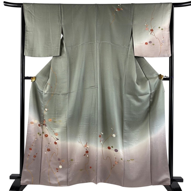【訪問着】 灰色系 灰緑 優品 B 約160cm~約169cm 裄丈66cm (M)size 袖丈48cm 4000-7980 二万以下