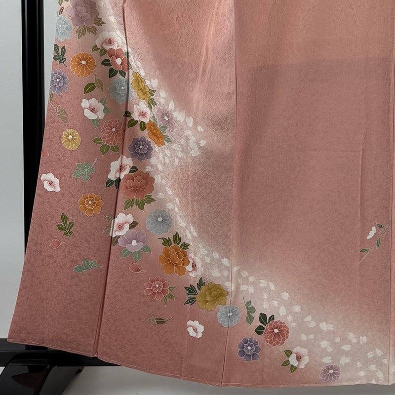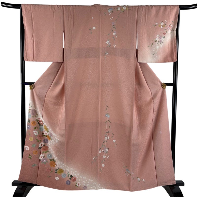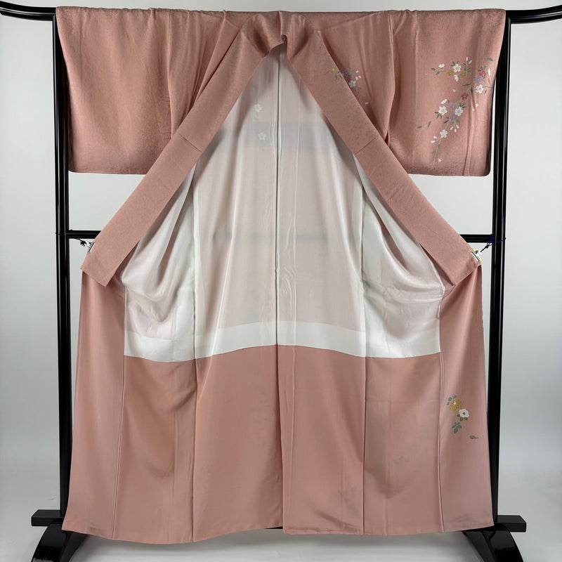 【訪問着】 赤系 ピンクベージュ 秀品 A 約160cm~約169cm 裄丈65cm (M)size 袖丈49cm 9990-29990 美品 二万以下