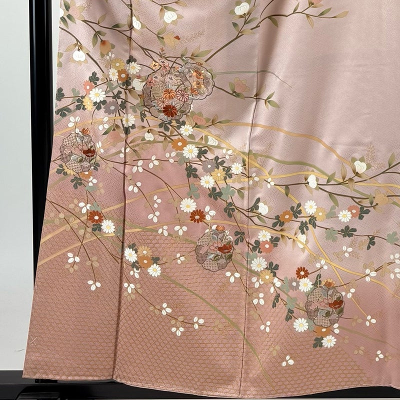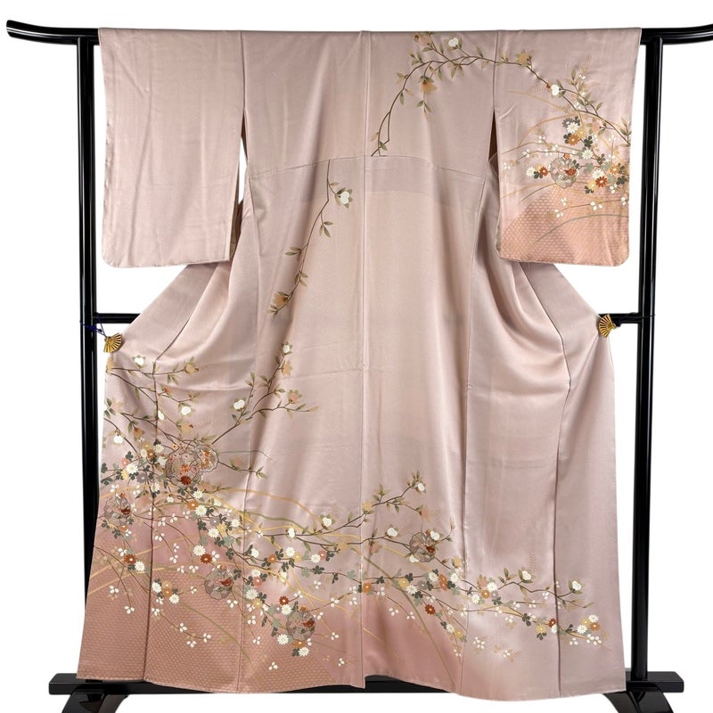 【訪問着】 赤系 薄ピンク 秀品 B 約150cm~約159cm 裄丈63cm-64cm (S)size 袖丈50cm-60cm 7990-9980 二万以下