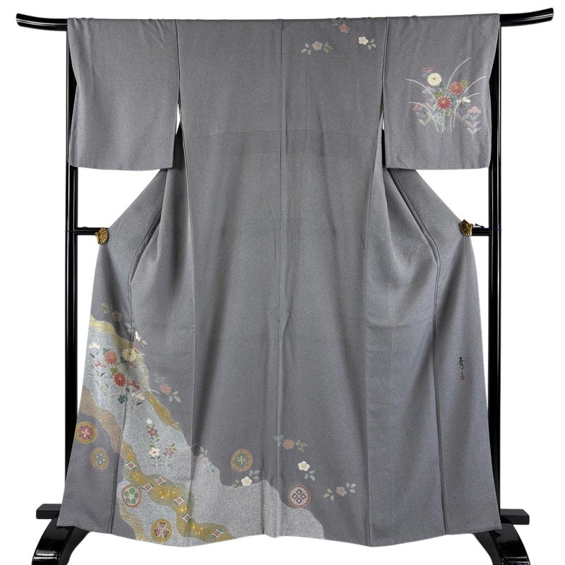 【訪問着】 灰色系 灰色 逸品 B 約160cm~約169cm 裄丈67cm-68cm (L)size 袖丈49cm 30000- 五万以下