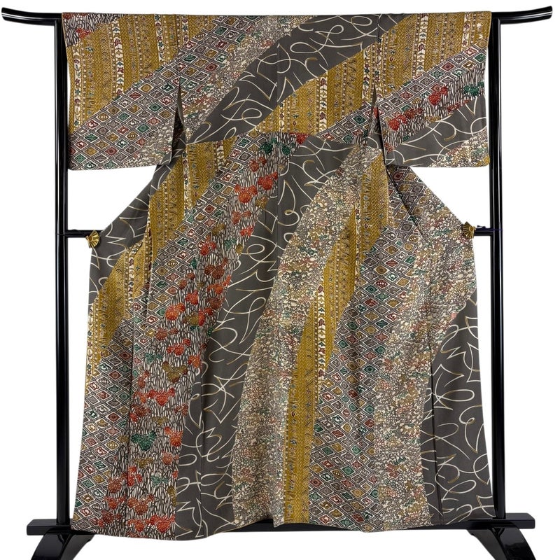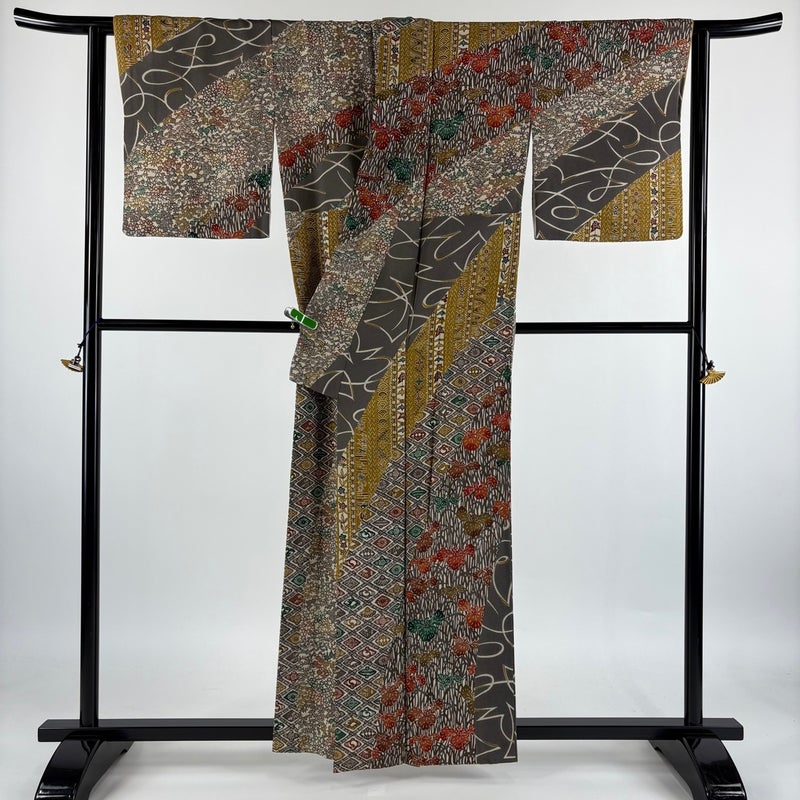 【訪問着】 灰色系 灰色 逸品 B 約150cm~約159cm 裄丈63cm-64cm (M)size 袖丈48cm 30000- 五万以下