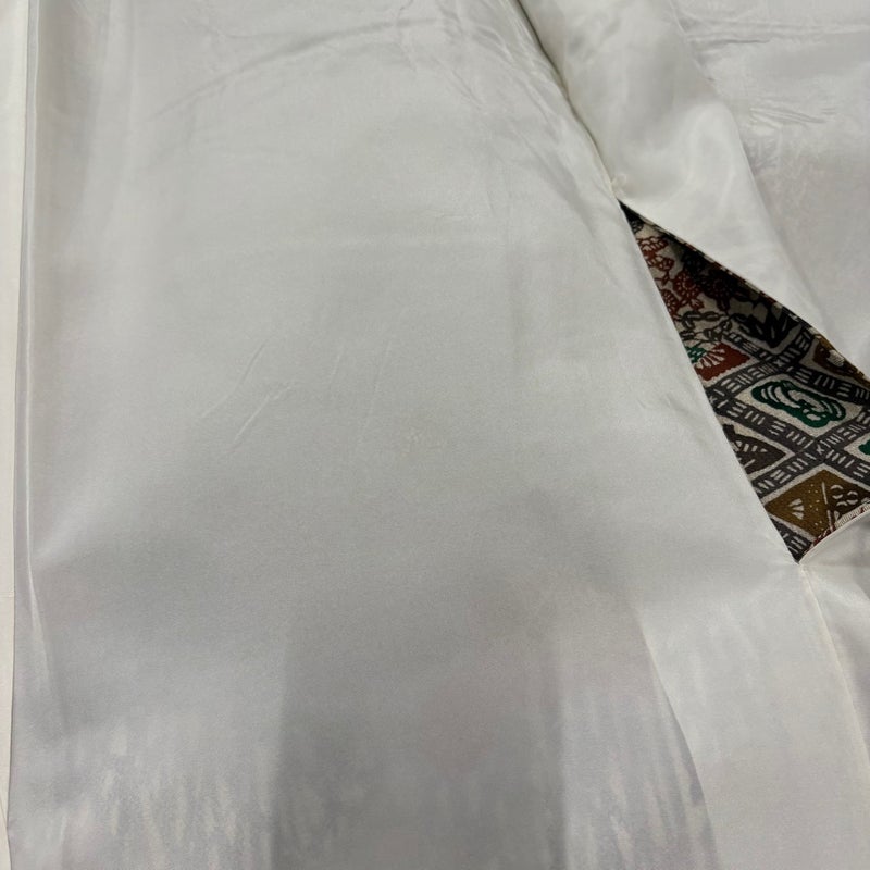 【着物ランク】逸品 【素材】正絹 【身丈】約159cm 【裄丈】約64cm 【袖丈】約48cm 【袖幅】約33cm 【前幅】約23cm 【後幅】約29cm 【サイズ】M 【着物仕立て】袷 【着用時期】10~5月 【状態ランク】ランクB 【着物着用シーン】披露宴、パーティー、お見合い、式典、茶会