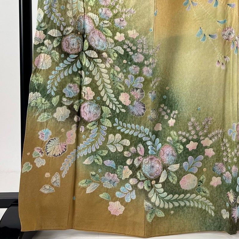 【訪問着】 黄色系 薄黄土色 逸品 A 約160cm~約169cm 裄丈67cm-68cm (M)size 袖丈61cm~90cm 30000- 美品 五万以下