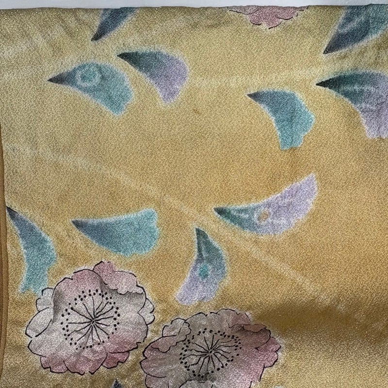 【着物ランク】逸品 【素材】正絹 【身丈】約168cm 【裄丈】約67cm 【袖丈】約64cm 【袖幅】約34cm 【前幅】約24cm 【後幅】約30cm 【サイズ】M 【着物仕立て】袷 【着用時期】10~5月 【状態ランク】ランクA 【着物着用シーン】披露宴、パーティー、お見合い、式典、茶会