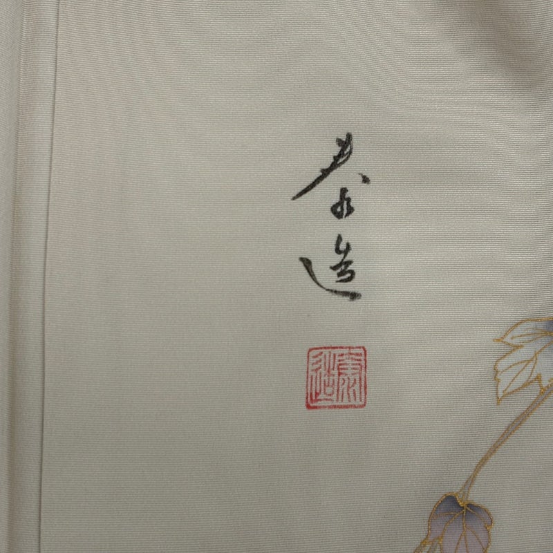 【着物ランク】逸品 【素材】正絹 【身丈】約157cm 【裄丈】約66cm 【袖丈】約49cm 【袖幅】約33.5cm 【前幅】約23.5cm 【後幅】約29.5cm 【サイズ】M 【着物仕立て】袷 【着用時期】10~5月 【状態ランク】ランクB 【作家名】甲斐泰造 【着物着用シーン】披露宴、パーティー、お見合い、式典、茶会