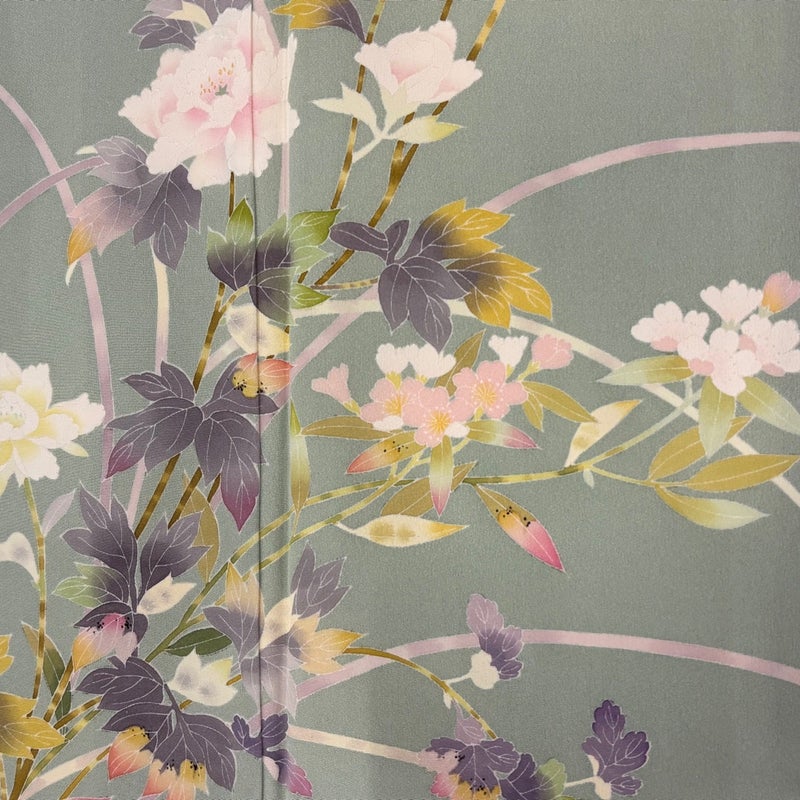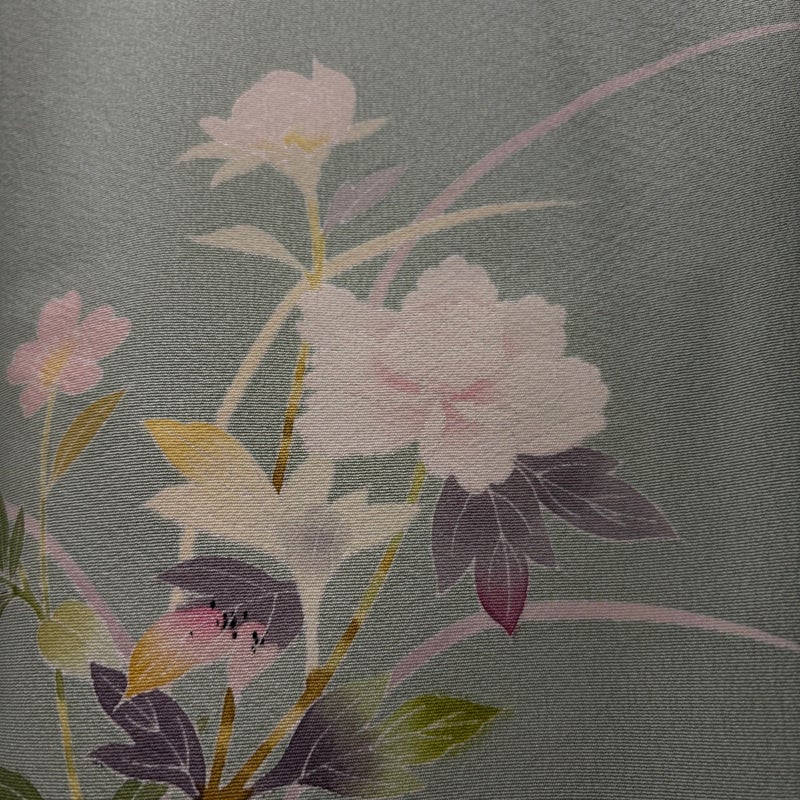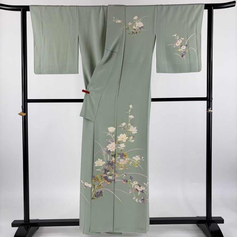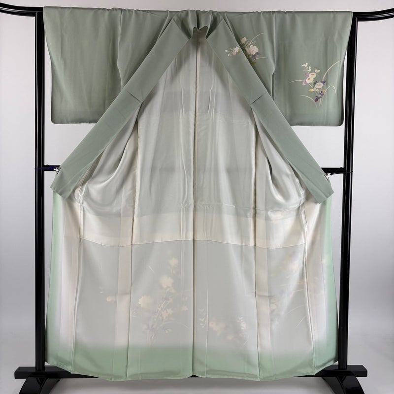 【訪問着】 灰色系 灰緑 逸品 A 約150cm~約159cm 裄丈63cm-64cm (M)size 袖丈48cm 30000- 美品 五万以下