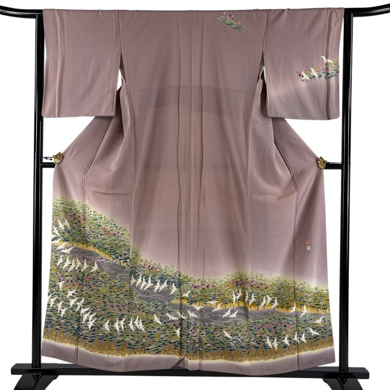 【着物ランク】逸品 【素材】正絹 【身丈】約156.5cm 【裄丈】約63.5cm 【袖丈】約48.5cm 【袖幅】約32cm 【前幅】約22cm 【後幅】約28.5cm 【サイズ】S 【着物仕立て】袷 【着用時期】10~5月 【状態ランク】ランクB 【着物着用シーン】披露宴、パーティー、お見合い、式典、茶会
