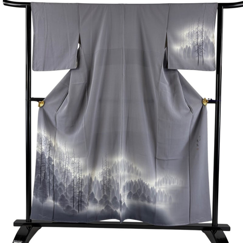 【訪問着】 灰色系 灰紫 秀品 B 約150cm~約159cm 裄丈63cm-64cm (S)size 袖丈48cm 7990-9980 二万以下