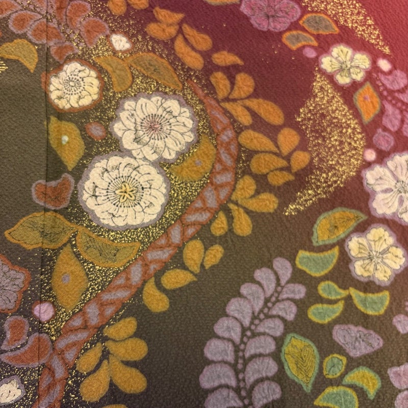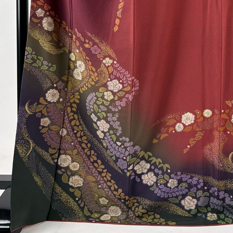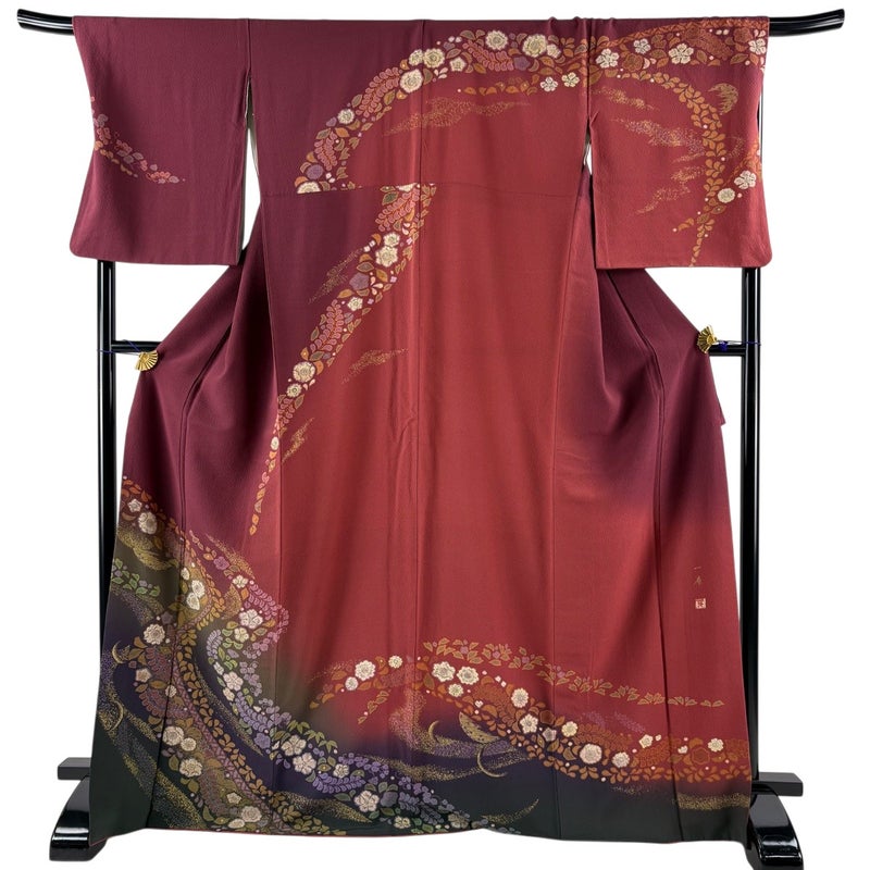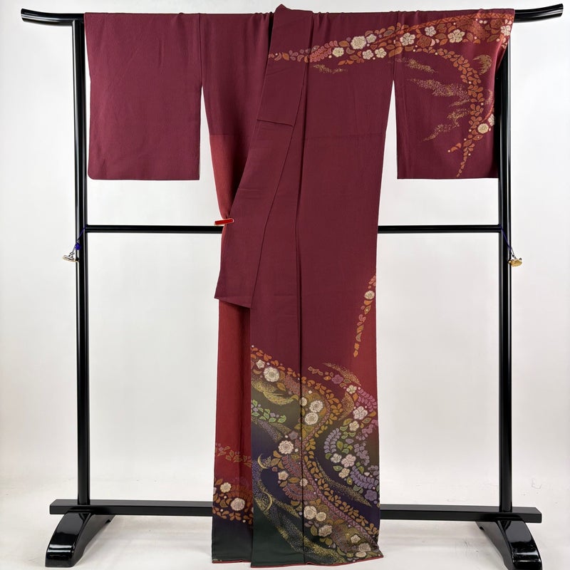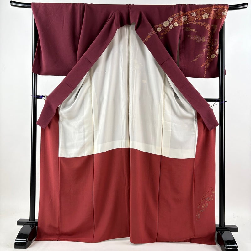 【訪問着】 赤系 えんじ色 逸品 C 約170cm~約179cm 裄丈69cm以上 (L)size 袖丈50cm-60cm 30000- 五万以上