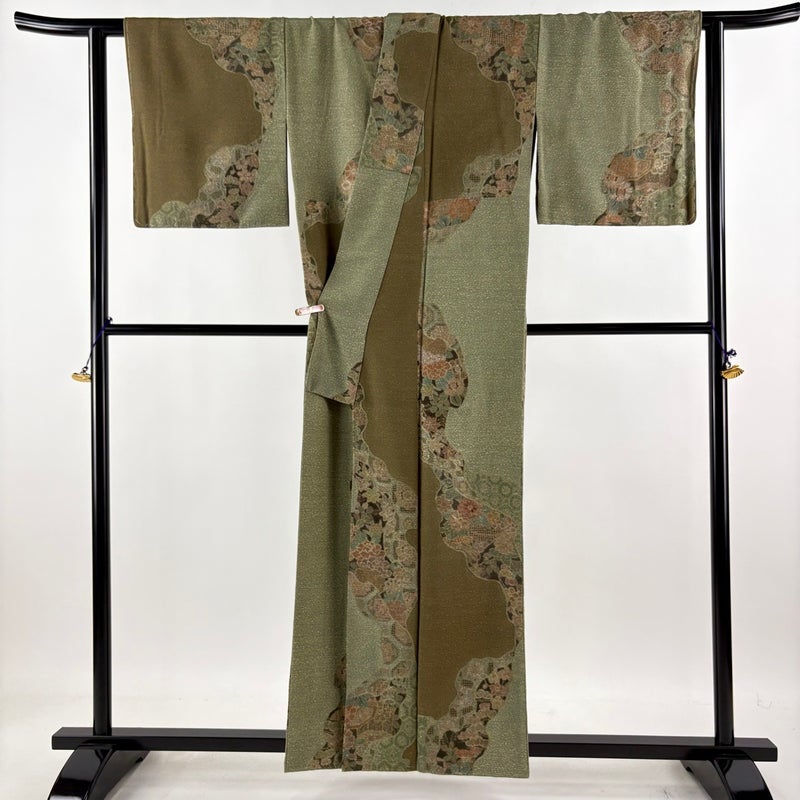 【訪問着】 緑系 鶯色 逸品 B 約150cm~約159cm 裄丈65cm (M)size 袖丈46cm以下 30000- 五万以上