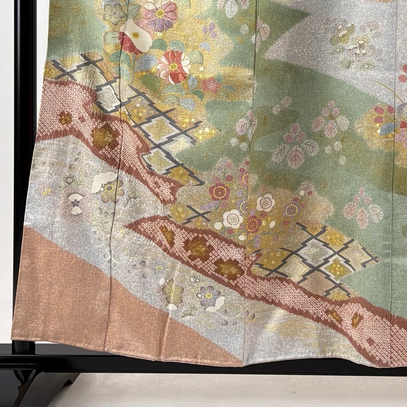 【訪問着】 緑系 薄緑 逸品 B 約150cm~約159cm 裄丈63cm-64cm (M)size 袖丈48cm 30000- 五万以下