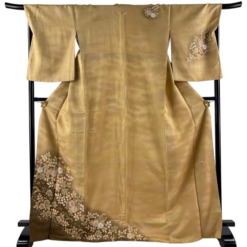 【着物ランク】逸品 【素材】正絹 【身丈】約171cm 【裄丈】約68cm 【袖丈】約56.5cm 【袖幅】約35cm 【前幅】約24cm 【後幅】約31cm 【サイズ】L 【着物仕立て】袷 【着用時期】10~5月 【状態ランク】ランクA 【作家名】翠山工房 【着物着用シーン】披露宴、パーティー、お見合い、式典、茶会