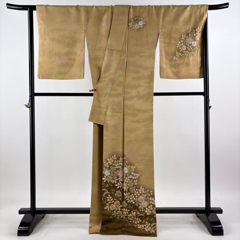【訪問着】 黄色系 薄黄土色 逸品 A 約170cm~約179cm 裄丈67cm-68cm (L)size 袖丈50cm-60cm 30000- 美品 五万以下