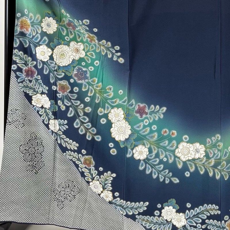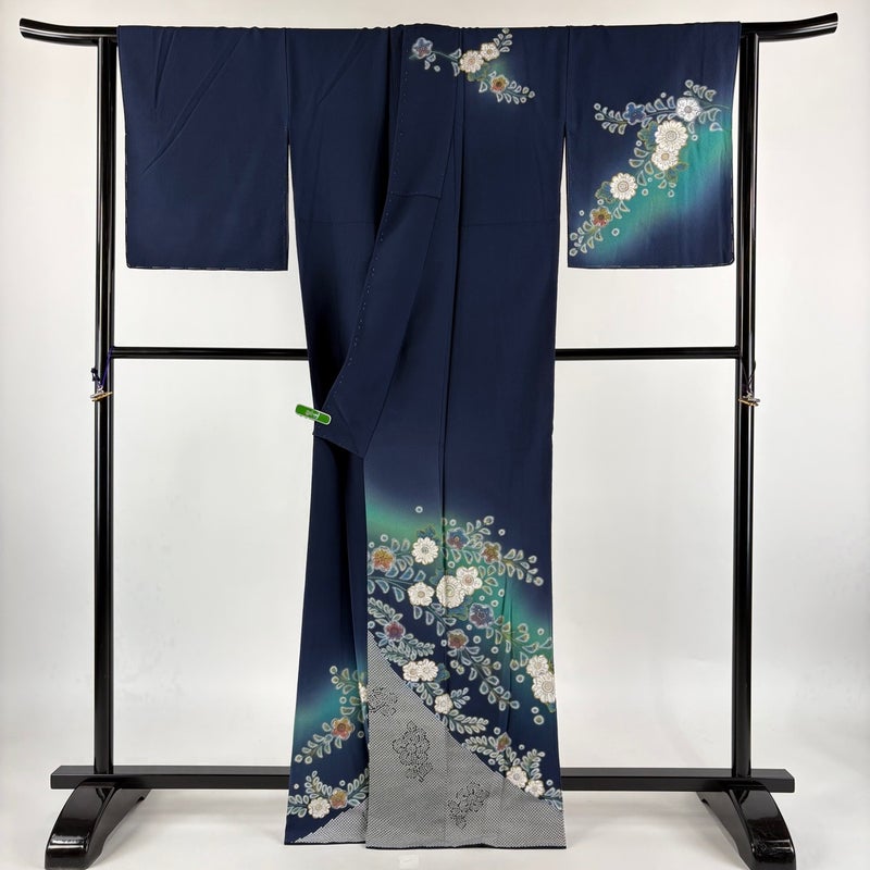 【訪問着】 青系 紺色 逸品 B 約160cm~約169cm 裄丈66cm (M)size 袖丈50cm-60cm 30000- 五万以下