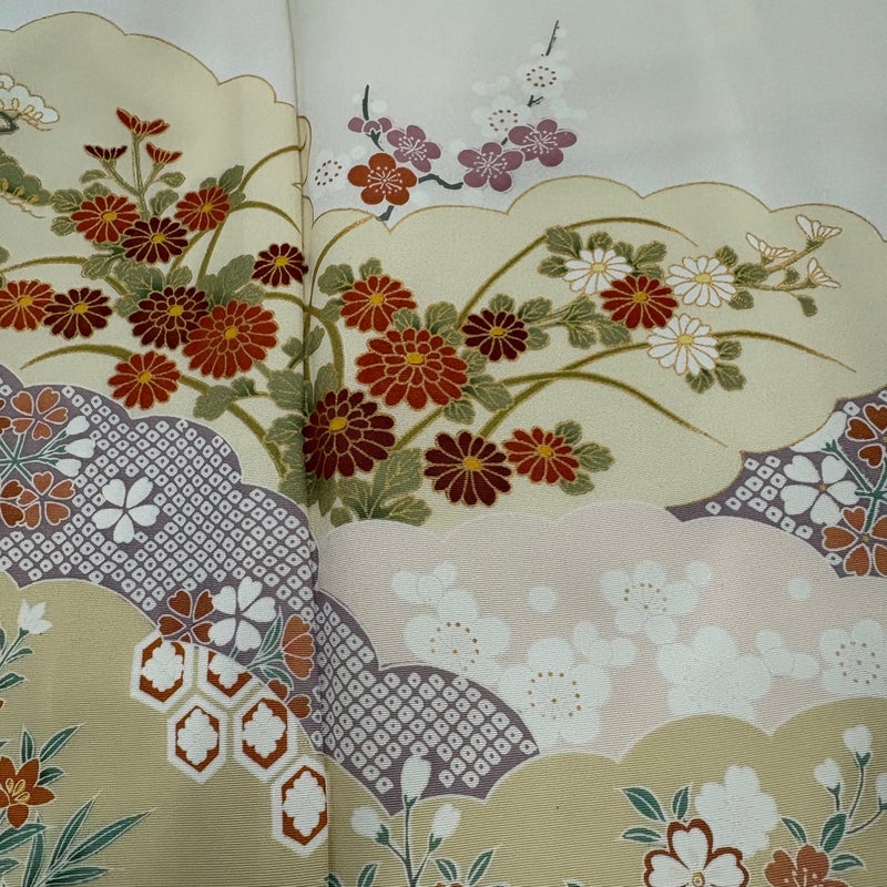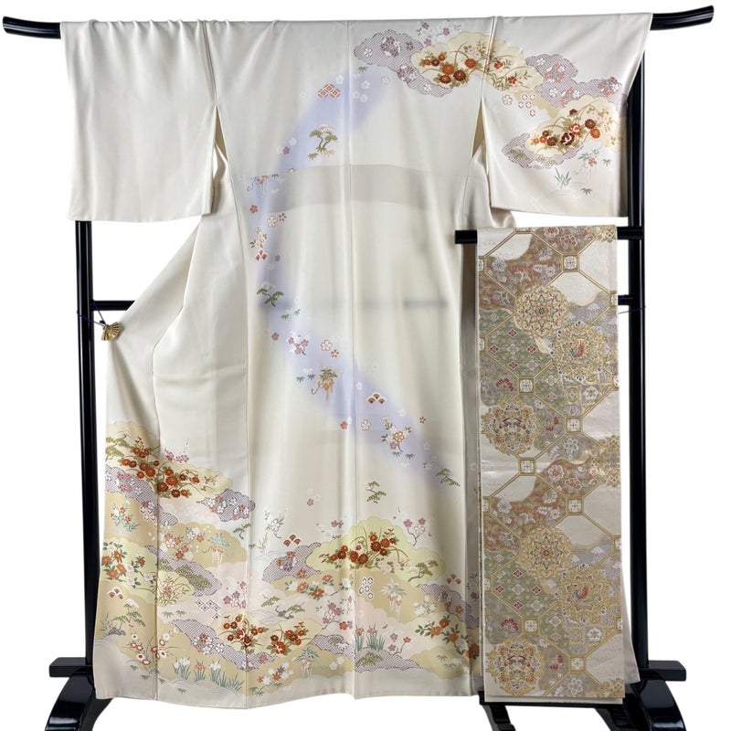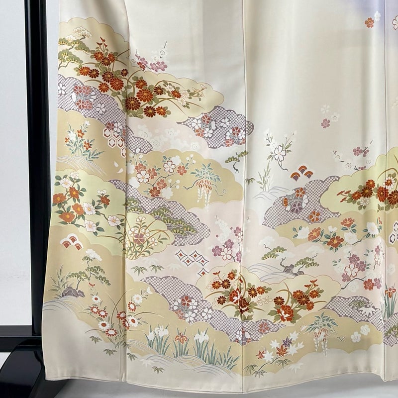 【訪問着】 白系 クリーム 秀品 A 約160cm~約169cm 裄丈69cm以上 (L)size 袖丈48cm 9990-29990 美品 五万以下
