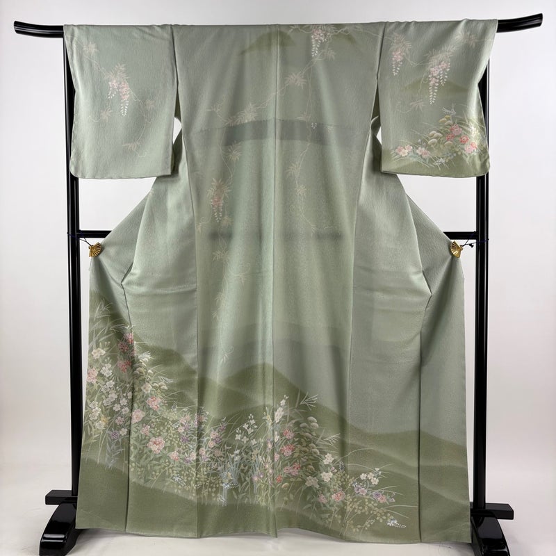 【訪問着】 緑系 薄緑 秀品 A 約160cm~約169cm 裄丈67cm-68cm (L)size 袖丈50cm-60cm 9990-29990 美品 五万以下