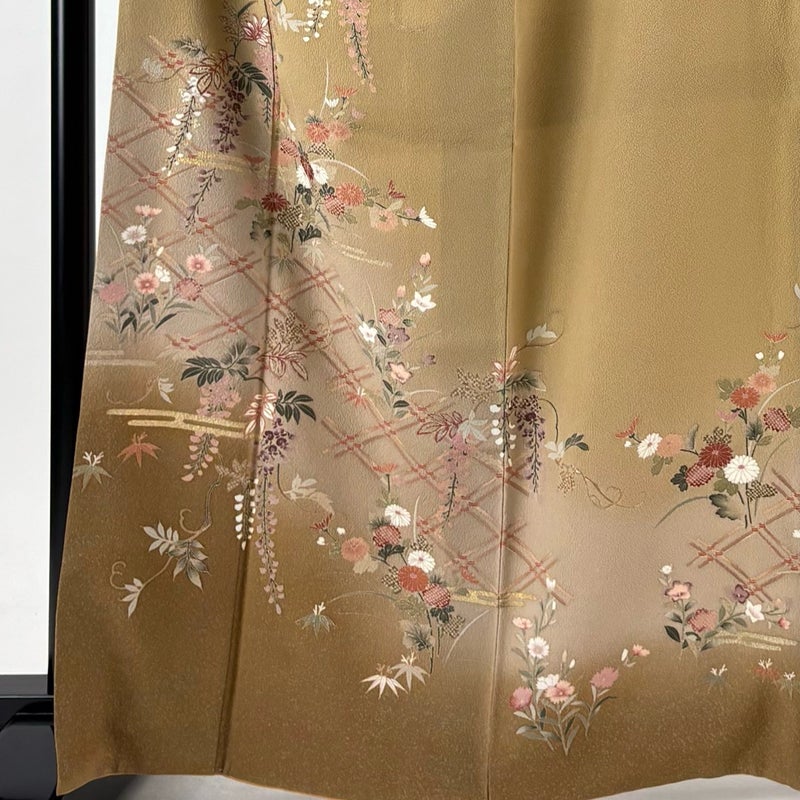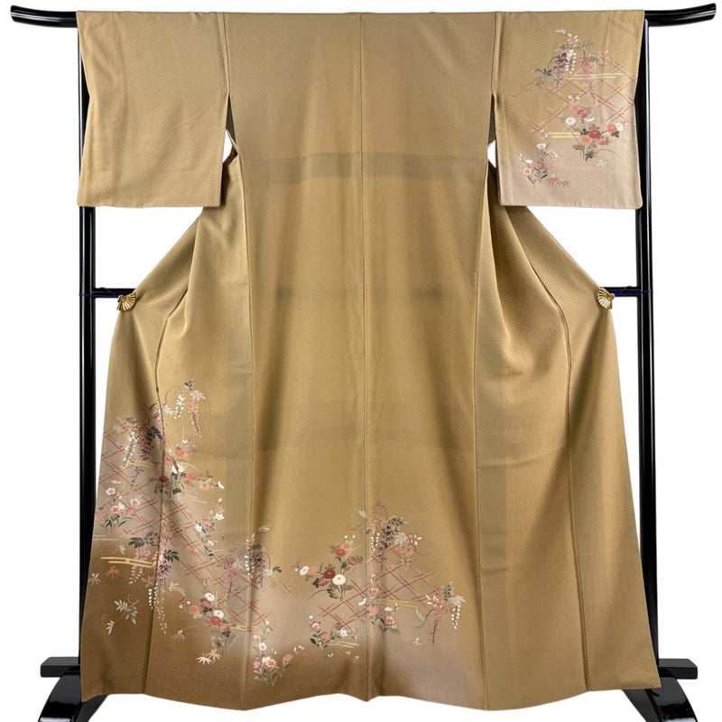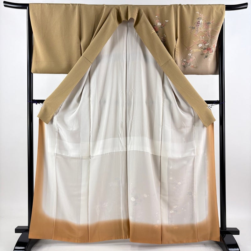【訪問着】 茶系 薄茶色 優品 B 約160cm~約169cm 裄丈66cm (M)size 袖丈48cm 4000-7980 二万以下