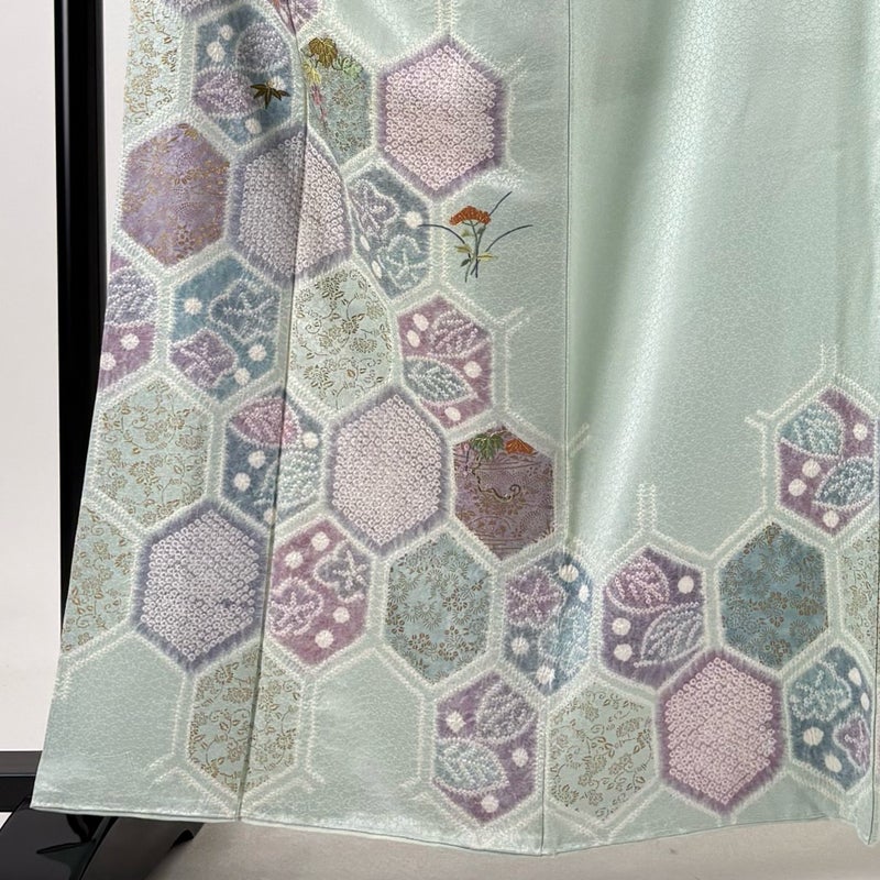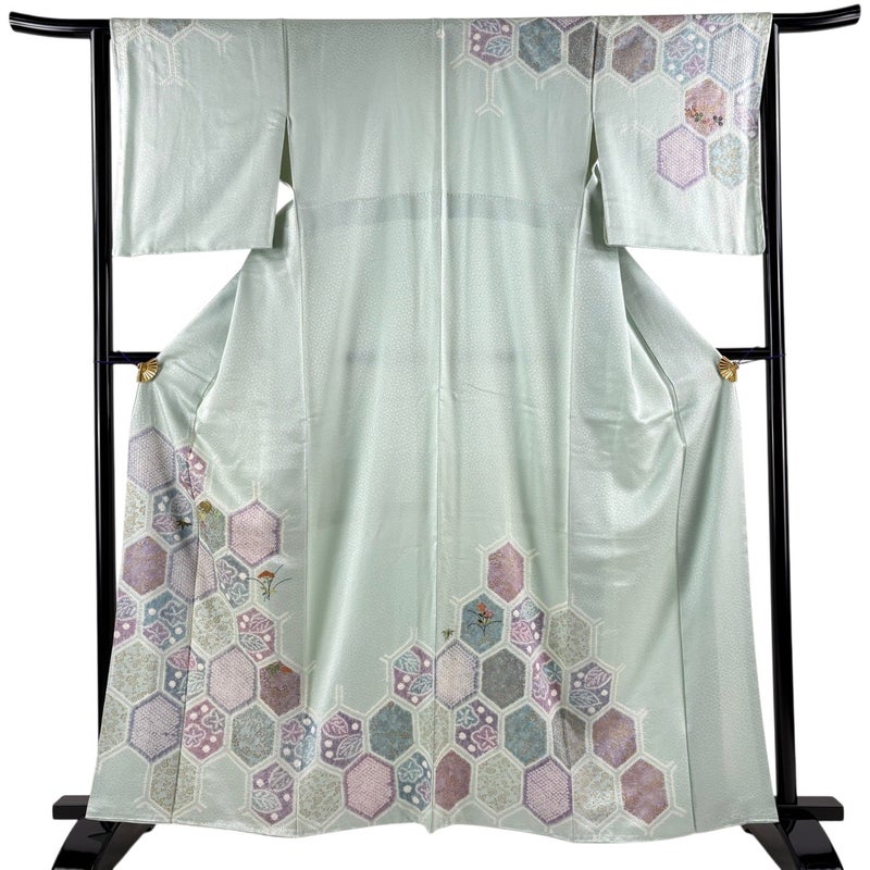【訪問着】 緑系 薄緑 優品 B 約160cm~約169cm 裄丈63cm-64cm (M)size 袖丈49cm 4000-7980 二万以下