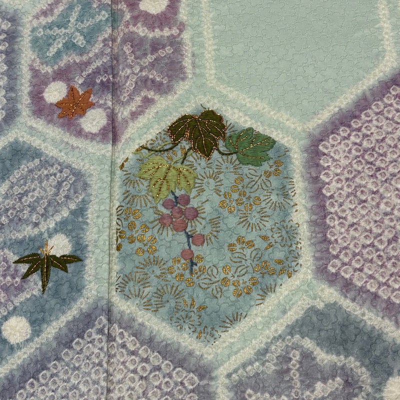 【着物ランク】優品 【素材】正絹 【身丈】約161cm 【裄丈】約64cm 【袖丈】約49cm 【袖幅】約33cm 【前幅】約24.5cm 【後幅】約29cm 【サイズ】M 【着物仕立て】袷 【着用時期】10~5月 【状態ランク】ランクB 【着物着用シーン】披露宴、パーティー、お見合い、式典、茶会