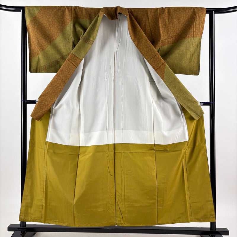 【着物ランク】優品 【素材】正絹 【身丈】約156cm 【裄丈】約62.5cm 【袖丈】約48cm 【袖幅】約32.5cm 【前幅】約24cm 【後幅】約29.5cm 【サイズ】S 【着物仕立て】袷 【着用時期】10~5月 【状態ランク】ランクA 【着物着用シーン】披露宴、パーティー、お見合い、式典、茶会