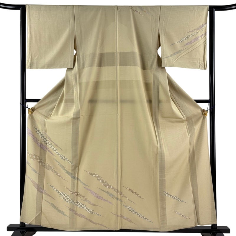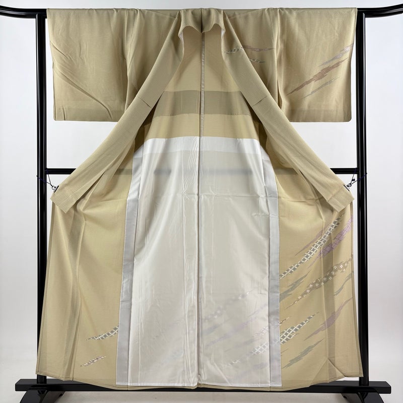 【着物ランク】優品 【素材】正絹 【身丈】約158cm 【裄丈】約62.5cm 【袖丈】約47.5cm 【袖幅】約32.5cm 【前幅】約24cm 【後幅】約29.5cm 【サイズ】S 【着物仕立て】薄物 【着用時期】7~8月 【状態ランク】ランクA 【着物着用シーン】披露宴、パーティー、お見合い、式典、茶会