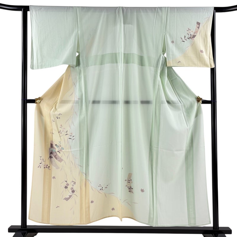 【訪問着】 黄色系 薄黄 優品 B 約150cm~約159cm 裄丈63cm-64cm (M)size 袖丈46cm以下 4000-7980 二万以下