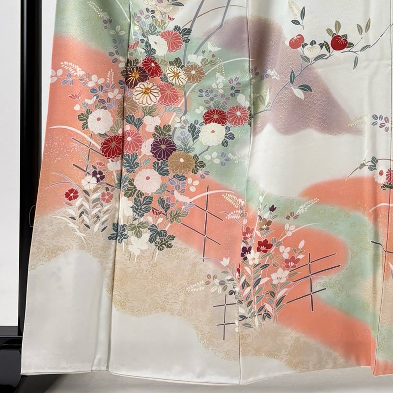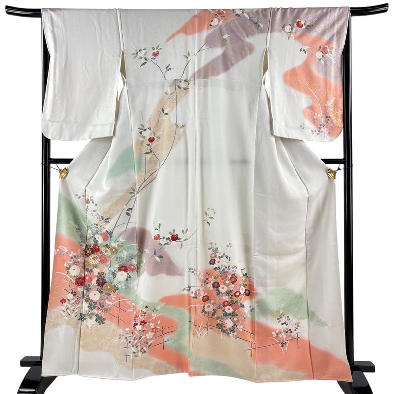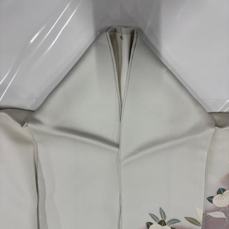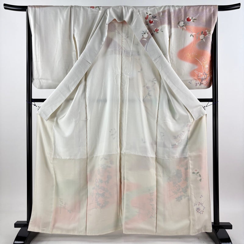 【着物ランク】優品 【素材】正絹 【身丈】約163.5cm 【裄丈】約66cm 【袖丈】約59cm 【袖幅】約33.5cm 【前幅】約25cm 【後幅】約30.5cm 【サイズ】M 【着物仕立て】袷 【着用時期】10~5月 【状態ランク】ランクB 【着物着用シーン】披露宴、パーティー、お見合い、式典、茶会