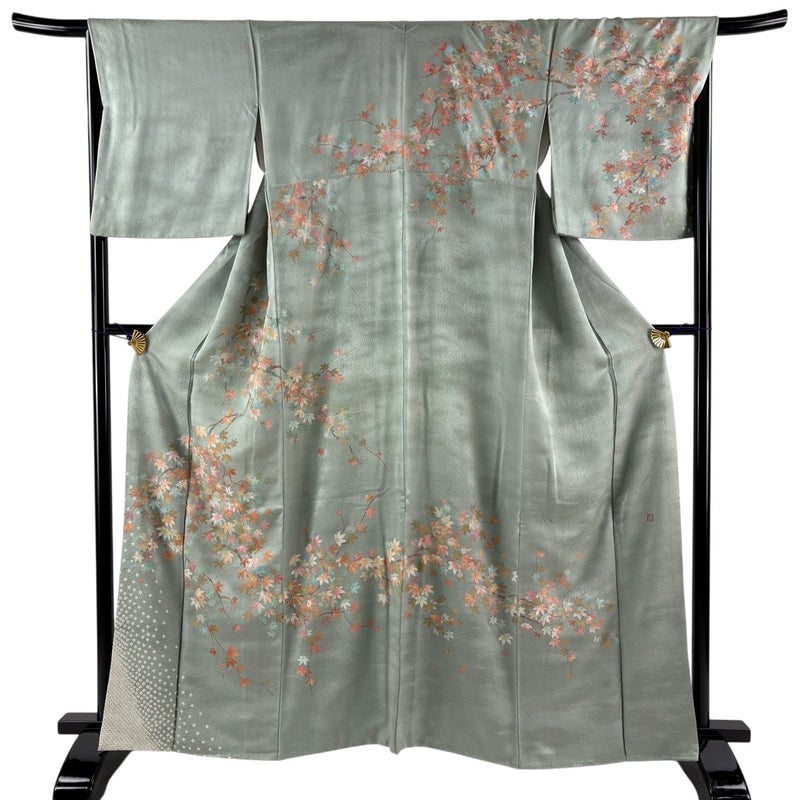 【訪問着】 灰色系 灰緑 優品 B 約160cm~約169cm 裄丈67cm-68cm (M)size 袖丈48cm 4000-7980 二万以下